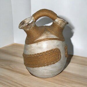 Unique Artisan Made Wedding Pottery Vase Signed from Chile Wrapped in Rope