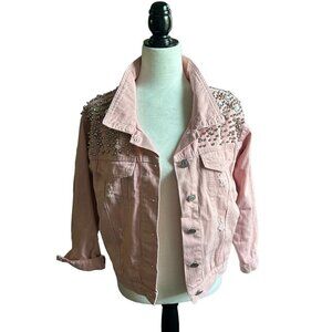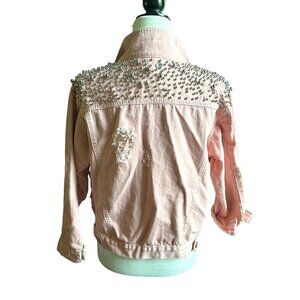 Unique Beaded Pink Distressed Denim Jacket US M