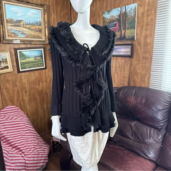 Unique Boho Black Ruffled Cardigan Sweater