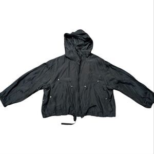Unique DKNY black silk hooded bomber jacket size 4 small