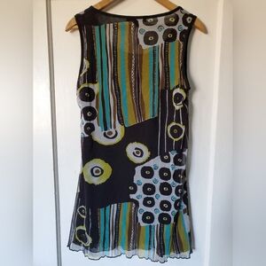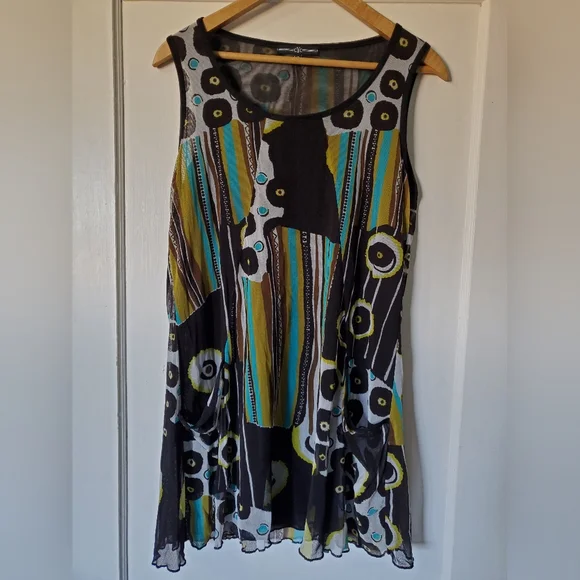 Vibrant unique designer sleeveless top featuring a unique pattern. Perfect for adding a pop of color to your wardrobe.