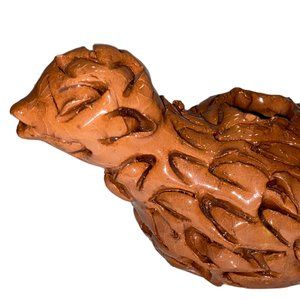 Unique Handmade Signed Red Pottery Clay Bird Candle Holder Figurine Collectible