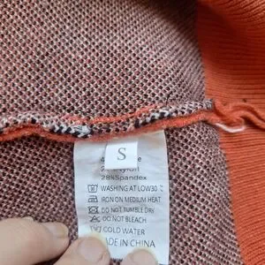 No brand tag but the sweater feels and looks like good quality. I included a picture of the inside so you can see how the design is actually knitted into the fabric and not just printed on.