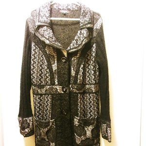 Unique Multitextured Long Black Cardigan