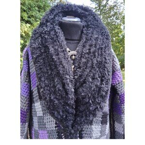 Unique One of a Kind Black Faux Fur Purple Gray Long Sweater Large /XL