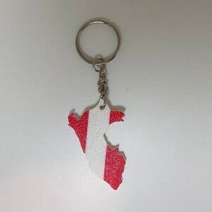 Show your love for Peru with this unique keychain shaped like the country's outline, adorned in the vibrant colors of the Peruvian flag—red and white! Whether you're a proud Peruvian or simply appreciate the rich culture, this keychain is a perfect accessory.