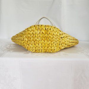 Unique Rattan and Leather beach, shopping, party or everyday bag with lining.