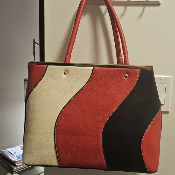 Modest size tote. Unique frontal design, open pocket with adjustable straps and interior. Bought for 65 at winners, selling for 55, not used.