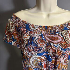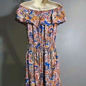 Unique Ruffle Top Paisely Off-Shoulder Boho Dress w/ tassel waist