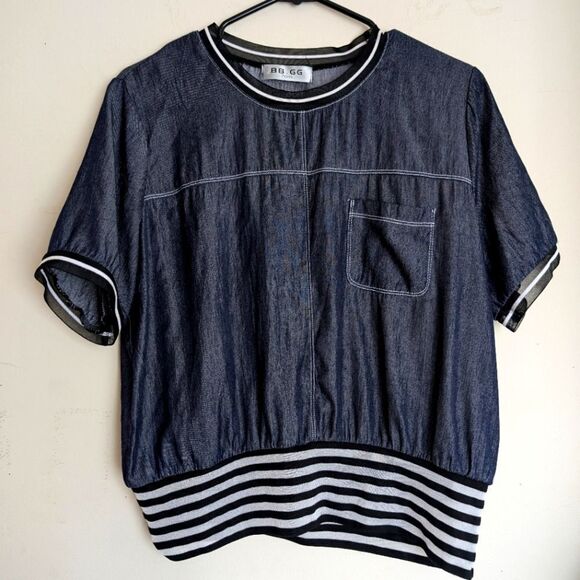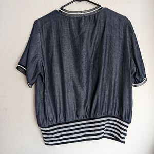 Unique Silk denim look striped shirt sleeve top size M