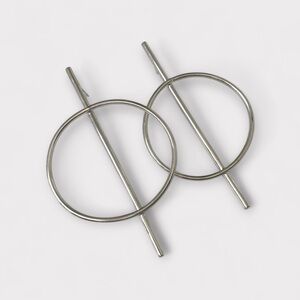A simple Minimalistic pair of Silvertone hoop earrings for pierced ears, large in size. Measures about 2 1/2”. Great condition.