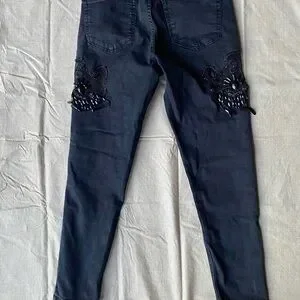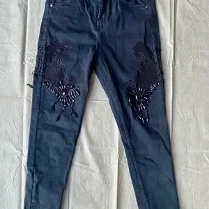 Super unique western design black skinny jeans with mesh cut out and beads. Great condition. TopShop.