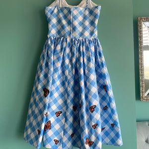 Unique Vintage Blue Gingham & Butterfly Darcy Swing Dress