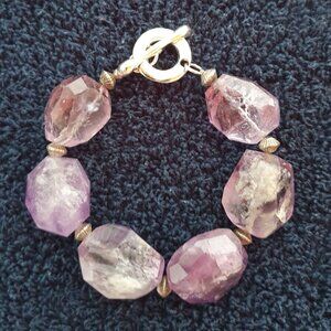 Step into serenity and strength with this exquisite Vintage “Fine Native American” Raw Amethyst Wisdom Bracelet. It features stunning raw, faceted amethyst stones set between sterling silver accents. This bracelet is more than jewelry—it's a tool for inner peace and clarity.
