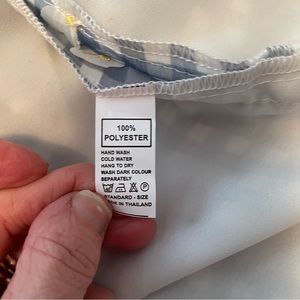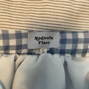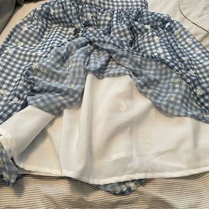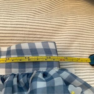 Unique Vintage Magnolia Place. Blue gingham knee-length skirt & sewn on flowers.