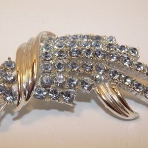 Unique Vintage Rhinestone and Silver-Tone Brooch