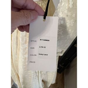 Unique Vintage Womens Large Peach Ivory Lace V-Back Formal Wedding Dress NWT