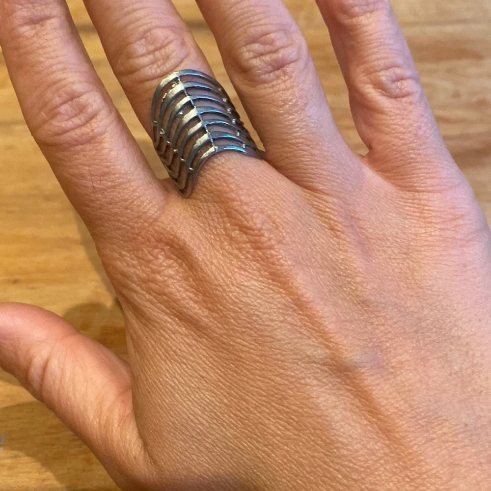 This is a cool ring that I’ve owned and enjoyed for some time now. I do not believe it is a precious metal and it doesn’t have any visible stamps on it so I’ve listed as costume jewelry. I’ve enjoyed it and am ready to let go some of my jewelry pieces. Bundle with other items and I’d be more than happy to send you an offer.