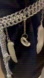 Unique silver chain belt/necklace up-cycled. Hand painted shells and feathers.