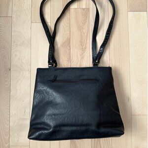 Unique vintage shoulder bag featuring a bold mixed animal print design with leopard and tiger panels, accented by a suede-style diamond patch and black croc-embossed trim. Double shoulder straps and zippered compartments make it both stylish and practical. A true statement piece for Y2K, grunge glam, or eclectic vintage lovers.
