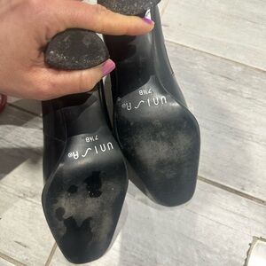 Unisa Black Leather Block Heel Shoe – Size 7B – Made in Brazil