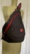 Used one time only! It is in amazing used condition! No noticeable flaws! A lot of compartments, all zippers works perfectly! The back is padded! Stylish black and red sling bag perfect for everyday use. Features a sleek design with convenient compartments.
