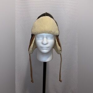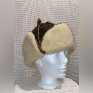 Unisex CROWNCAP synthetic shearling dark brown sheepskin winter Aviator Hat