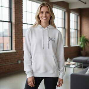 White unisex Christian Dior hoodie oversized. Loose look. Casual for everyday