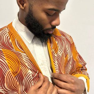 Laissez-vous séduire par la veste TAFUKT ! Son tissu, un flower power orange, bordeaux avec des touches de gris d'une intensité captivante, invite à la gaieté. Cette pièce audacieuse vous transformera en maître de l'élégance, prêt à captiver tous les regards avec votre style unisex,