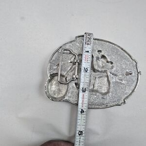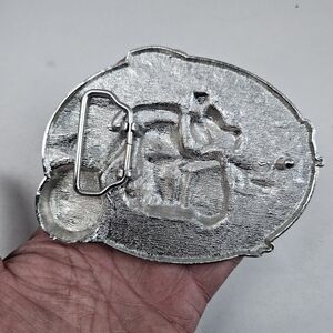 Unisex "Live To Ride - Ride To Live" Skelton Riding Motorcycle Belt Buckle. Pre-owned. Note the 'E' on "live" has dot of silver paint missing.
