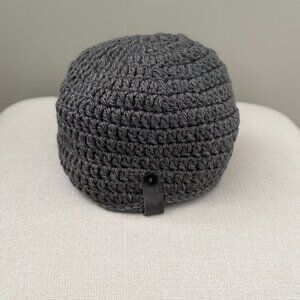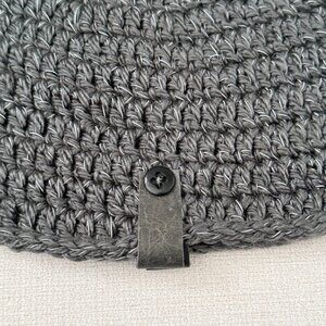 Real gray leather tabs at sides for interest, highlighted with black buttons