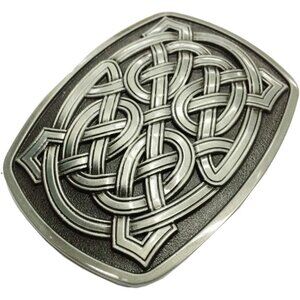 Unisex Silver Rectangle Celtic Knot Kilt - Western Keltic Belt Buckles