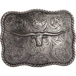 Unisex Silver Western Cowboy Belt Buckle - Texas Bull Skull Belt Buckle