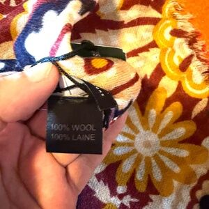 Unisex burgundy and cream floral lightweight pure wool scarf new with tags. 100% wool fabric that feels soft and light, it could be worn during the warm months as well in my opinion. Boho cottagecore vibe. 74" x28° (188 cm X 71 cm). This item comes from a smoke free, pets friendly home. Recycled bags/box used when possible. Please, let me know if you'd like any additional info. Thanks for watching!