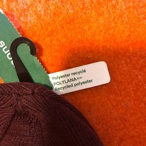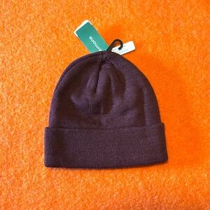 Unisex burgundy monochrome cuffed tuque hat beanie new with tags. Soft, double-layer knit in a recycled polyester blend, unsewn cuff, logo tab. Colour is accurate in the stock photos, mine are taken in artificial light. Marked One size, please see pictures for measurements. This item comes from a smoke free, pets friendly home. Recycled bags/box used when possible. Please, let me know if you'd like any additional pictures and/or measurements or other info. Thanks for looking!