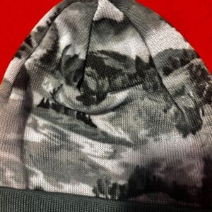 Unisex green forest print piqué knit tuque hat beanie new with tags. A fresh style adorned with beautiful forest landscape, soft and stretchy double layered knit made from recycled polyester and spandex, unsewn cuff. Colour is accurate in the stock photos, mine are taken in artificial light. Marked One size, please see pictures for measurements. This item comes from a smoke free, pets friendly home. Recycled bags/box used when possible. Please, let me know if you'd like any additional pictures and/or measurements or other info. Thanks for watching!