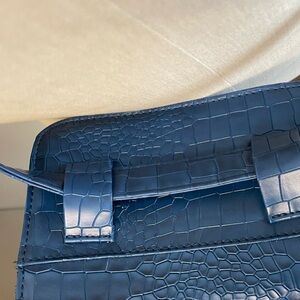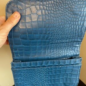 Unisex stylish shoulder bag belt bag faux crocodile leather w gold hardware