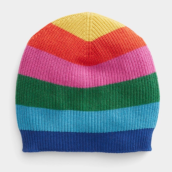 United Colors of Benetton unisex wool and cashmere blend colourful fun stripe hat tuque beanie new with tags. Striped in rainbows colours (blue, green, red, yellow, etc.), lightweight ribbed knit in a blend of polyamide and wool with a touch of cashmere. Composition: 35% polyamide, 30% viscose, 30% wool, 5% cashmere. Marked One size, please see pictures for measurements. This item comes from a smoke free, pets friendly home. Recycled bags/box used when possible. Please, let me know if you'd like any additional info. Thanks for watching!