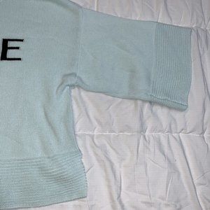 EUC United Colours of Benetton mint green and black loose, cropped “People” sweater with wide three quarter length sleeves in women’s size small.