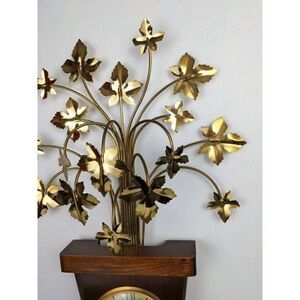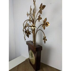United USA gold leaf clock, Brass leaves planter mcm vintage rare pot shape