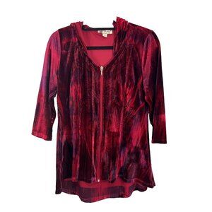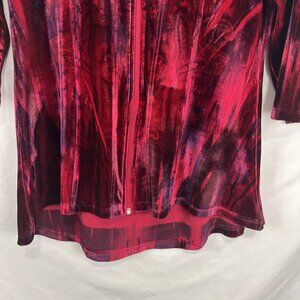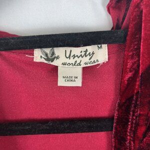 Unity World Wear Red and Black Paisley Patterned Velvet Cardigan Womens Size M