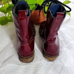 #patent #leather #coated #red #glossy #combat #boots #ankle #Unity #diversity #laceup #lace-up #Europe #European #armyboot #buskin #tactical #vintage #Retro #rare #military #Goth #punk #grunge #emo #80s #90s #y2k #bikercore #Tomboy #Tom girl #burgundy #wine #deep-red #maroon