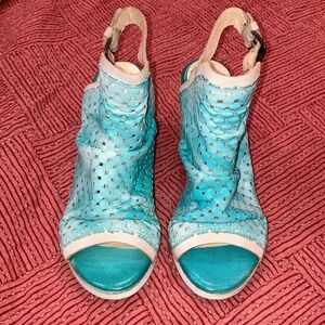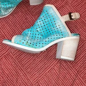 Unity in Diversity turquoise and Cream Heels with Chunky Heel