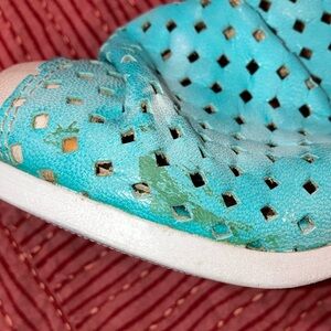 Very good used condition, genuine Portuguese leather upper. Padded footbed. Adjustable ankle strap. Some variations in color as seen in photos. Not very noticeable when worn. Beautiful shoe great for outings or formal occasions.