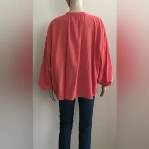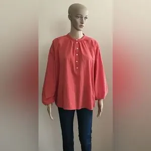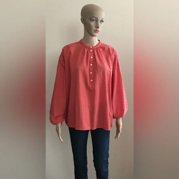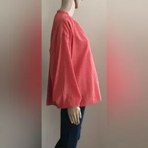 Salmon Color Textured Top. Long Sleeve with Button at Cuff. Front Buttons.