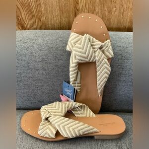 Slip on Sandals with a Textile Knotted Design with a Chevron Pattern. Beige