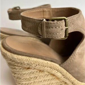 Gorgeous and very comfortable espadrille wedges, Size 9.5, with microsuede foot cover and ankle straps. See photos for measurements of heel height ~4.5”. This is the Cayla model in Taupe by Universal Thread Goods Co. Worn 1x only, like New