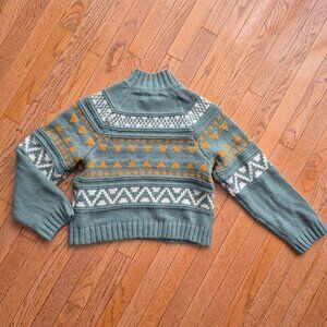 Universal Thread Cozy Alpine Snowflake Mockneck Pullover Sweater Green XS