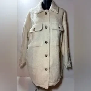 Soft cream button-front shacket by Universal Thread. Features chest flap pockets and visible buttons. Cozy, textured fabric for easy layering. Versatile neutral piece for everyday wear.