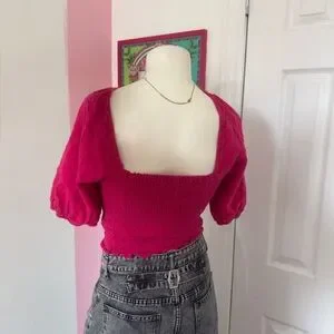 Universal Thread Fuchsia Pink Ruched Puff Sleeve Crop Top